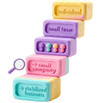 Хувь хүн, жижиг баг, жижиг компани, эрчимжсэн, тогтворжсон бизнес гээд 25 дэд түвшин дээр оношлоод, түвшин бүрт тусдаа шийдэл санал болгодог.